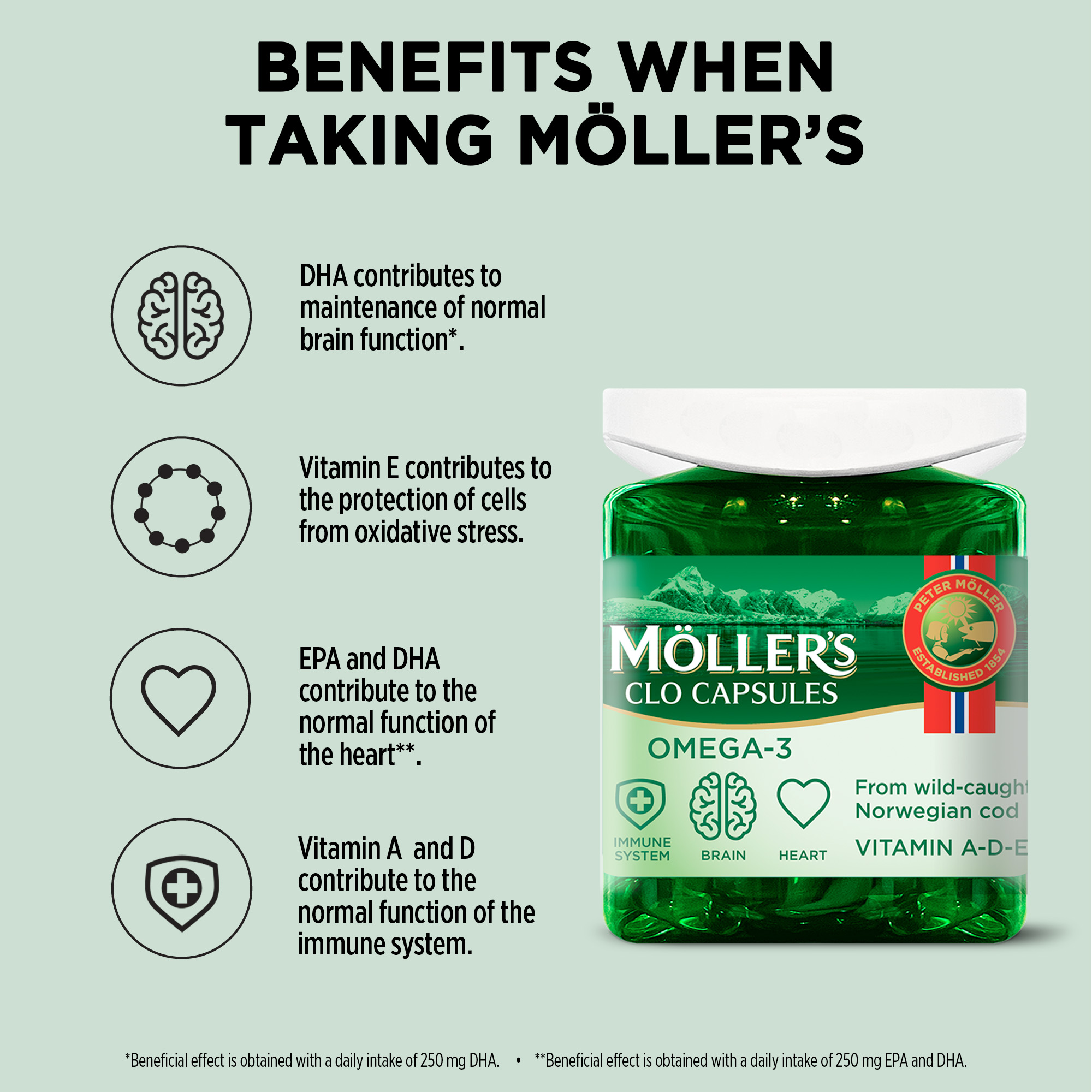 **The beneficial effect is achieved with daily consumption of 250 mg of EPA and DHA.